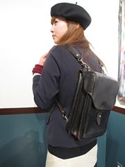 ヨーロッパ(パリ!)の学生さんが背負ってそうな革のランドセルタイプのリュックは、牛革製でとっても丈夫。流行に流されず、長~く使えますね。ベレー帽かぶってコレを背負えば、もうパリの学生さんですよー!