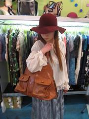 ちなみにバッグに合わせたこのブラウスかわいいでしょっ!!今回の商品は、すべてBADというメーカーのもので、主に70年代のヒッピー~ボヘミアン調のお洋服や雑貨を作っている、知る人ぞ知るのメーカーなんです。いくつかのブランドがあって少しずつコンセプトが違います。お店でチェックしてみて下さい★
