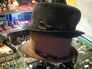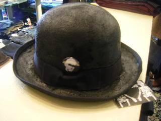 ボーラーハットに塗料で加工を施し、ヴィンテージのような雰囲気になっているハットです。写真だと雰囲気が伝わりにくいので、ぜひ店頭に見に来て見て下さい♪