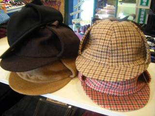 次の帽子は誰もが知る、あの名探偵コナン!!ではなくシャーロックホームズの帽子のイメージの強い、ディアストーカーハット。元は鹿猟師の人たちが被っていた帽子なんですが、今ではシャーロックホームズのイメージが残り、シャーロックハットとも呼ばれるようになったみたいです。なかなか見かけないこの帽子被ってみるとかなり被りやすいです♪