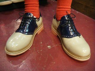 このサドルシューズは、いわば古くて新しい。クラシックにもアバンギャルドにも似合う面をしております。