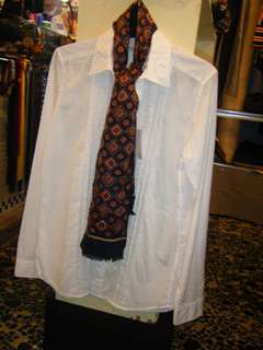 雑誌の海外ストリートスナップで、ロンドンやパリの人々が、蚤の市なんかで買ったと思われるアンティークストールをナポレオンジャケットなんかに白いTシャツやドレスシャツを着て、ハラリと巻いてますね。ボトムはデニムに革靴って感じで。カッコええ!