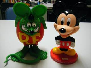 この不気味なネズミ<RATFINK>!!実は…エド・ロスというピンストライパーでも有名な人が『ミッキーの親父ってきっとこんな感じだゼ』ってレストランのナプキンに落書したのがラットフィンク!以外に女性からも人気です!こんなに不気味なのに見てるとドンドン気になっちゃう存在です。
