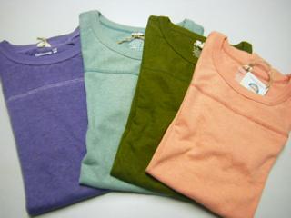 GOHEMPのカットソーでお馴染みの<オーガニックコットンヘンプ>!!無農薬で育てあげられた環境にも身体にもやさしいコットンで、普通のコットンに比べて手間がかかるため、綿・生産量の1%くらいしかつくられてないんです!麻はその点、虫などにも強く丈夫なため、農薬いらずで手間がかからない、こちらもオーガニックですね★麻が入っていることで生地に強さができ・通気性もよくなる訳です。なので、洗濯にも強く・乾きやすい!まさに夏向きデス。