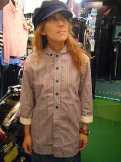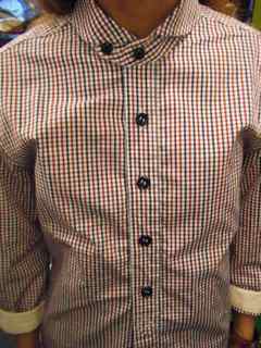 トリコロールギンガムの丸衿。女性が似合わないわけはありませんね。