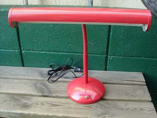赤のデスクランプ。形と色がとってもレトロ。
