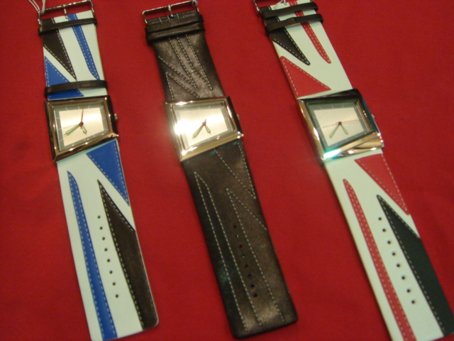 ユニオンジャックパターンのレザーベルトウォッチ。