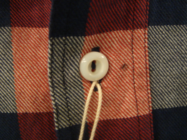 30年代、40年代に多く見られた、左右非対称の胸ポケット、三本針のステッチワーク、ネコメボタン等、仕様