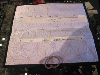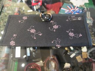 バラ柄ですみれ色にしてください。形は・・・といろいろ出す注文を聞いてくださり、完成したのがこちら!!大きなボタンがかわいいチケットケースを作ってもらいました!!