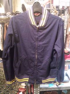 コットンツイルにライン入りのリブ付き!シンプルなこのジャケット、もともとベースボール系のスポーツ向きデザインですが、ホットロッダーがよく着用しているカークラブジャケットってこんなのが多い気がする。