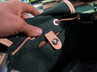 八号帆布と適度に厚みのある牛革。それを組み合わせ、太番手の糸で頑丈に縫われている、しっかりとした作り。いかにも長く愛用できそうなクオリティーです。
