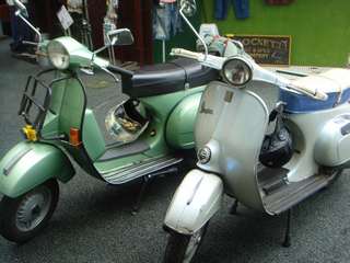 左のヴェスパは全て自分でカスタムしているらしく、まさしく愛車そのもの。オリジナリティーあふれるカスタムッぷりが他には無い味わいになってます。